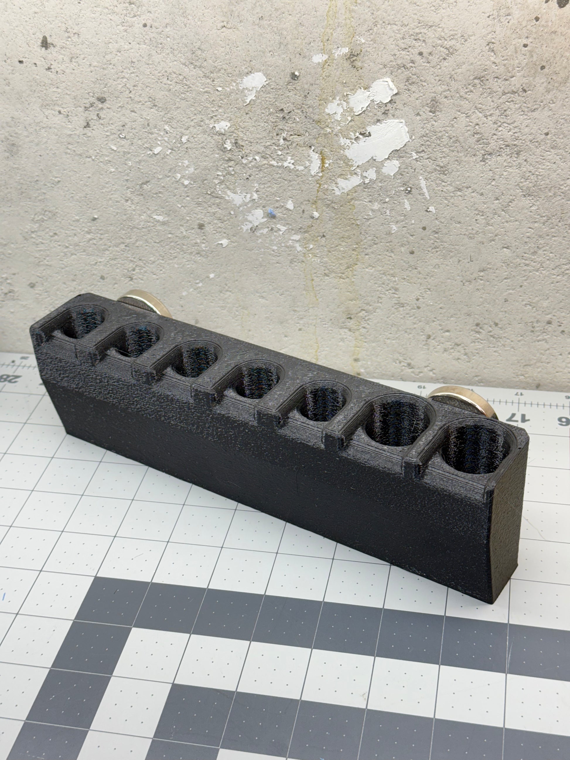 Holds a set of heel bars.