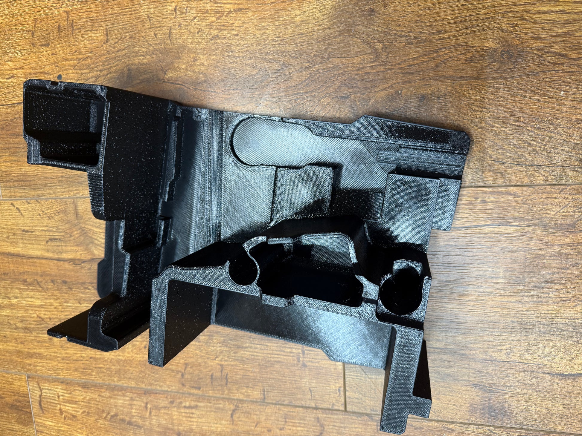 Holds your M12 3/8 stubby impact, 3/8 socket, box wrench, spare sockets, blades, bolts/nuts.