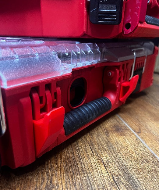 No more spilling your packout shit all over the job site at 4:50 on a friday. When you grab the handle the spill stops latch onto the lid preventing spillage.